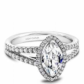 This style can accommodate round or princess and can be customized to fit a variety of diamond shapes, available by special order